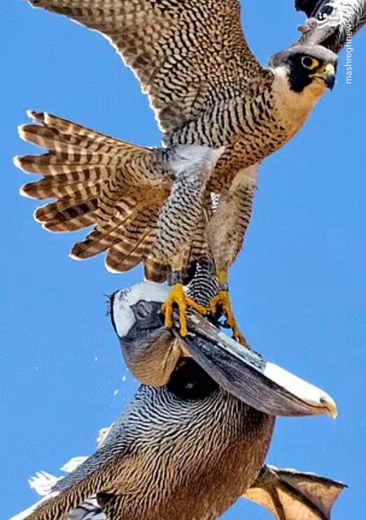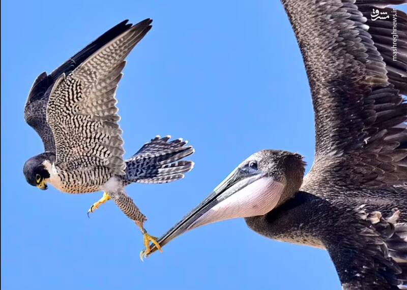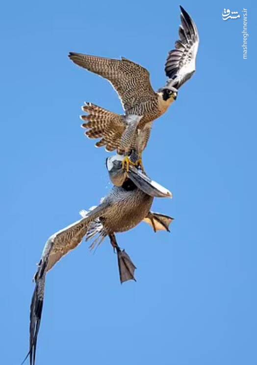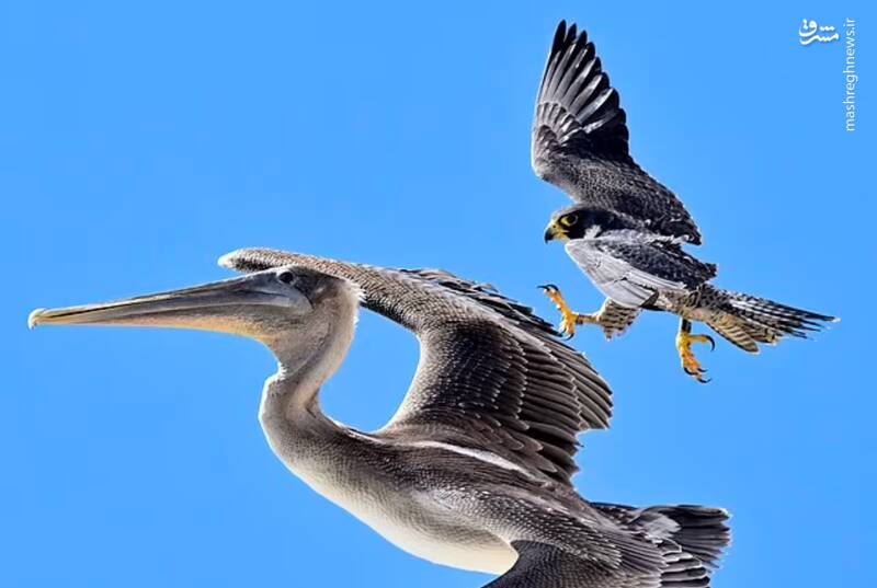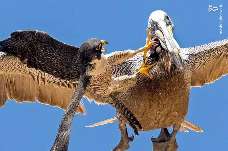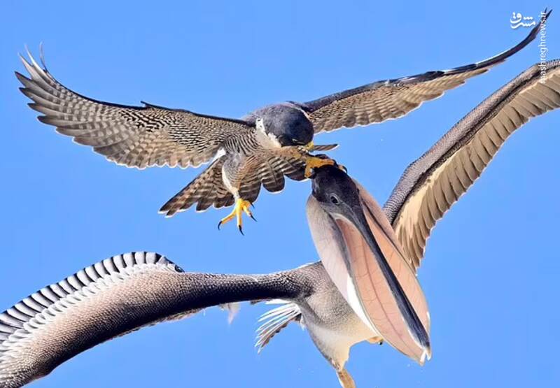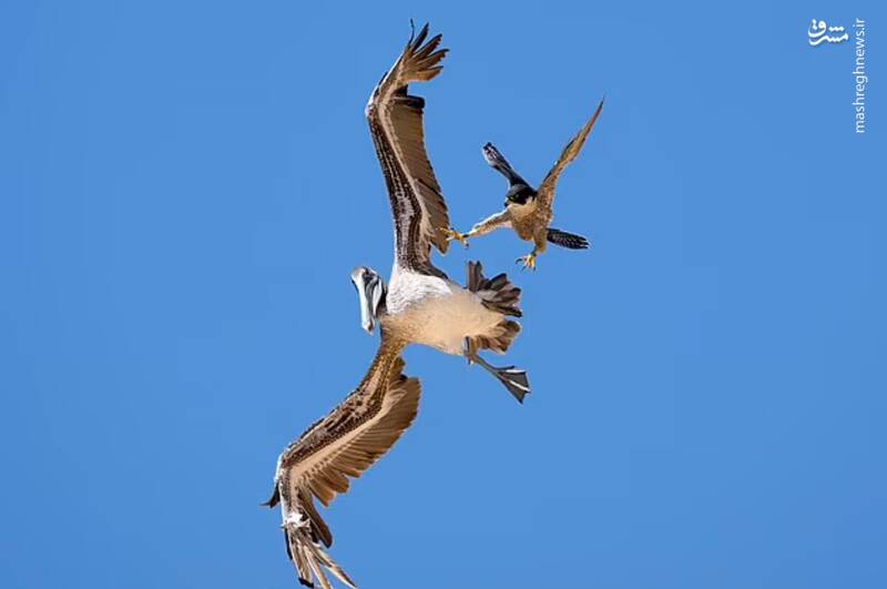عکس/ نبرد شاهین و پلیکان در آسمان
