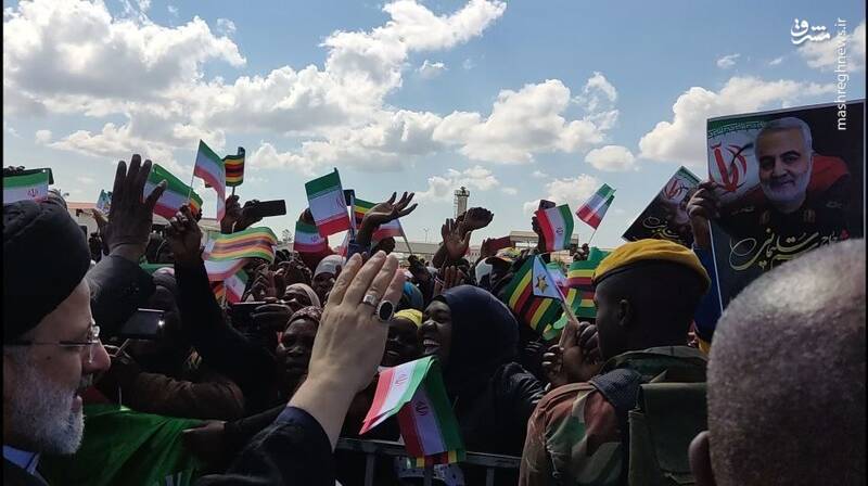 اخبارکامیاران:در حاشیه استقبال رسمی از سید ابراهیم رئیسی رئیس جمهور در فرودگاه هراره زیمبابوه تصاویر رهبر معظم انقلاب و شهید حاج قاسم سلیمانی جلب توجه میکرد