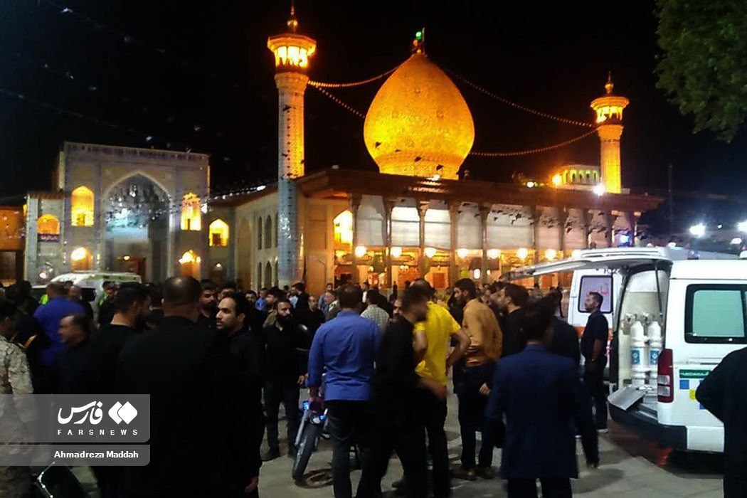 فرمانده سپاه فجر استان فارس در گفتگو با شبکه خبر عنوان کرد: تروریست مسلح به اسلحه جنگی با هشت خشاب اضافی از بیرون محوطه حرم شروع به تیراندازی میکند، سپس از درب باب المهدی وارد حرم مطهر میشود که هفت نفر از زائرین داخل حرم را مجروح میکند و یک نفر نیز به شهادت میرسد. به گفته یدالله بوعلی تروریست مسلح توسط نیروهای حفاظتی دستگیر شده است.