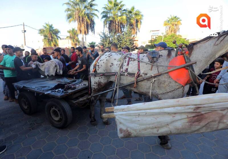 به گزارش گروه بین الملل اخبارکامیاران،بخاطر نبود آمبولانس فلسطینیان پیکر شهدا و مجروحان رابا گاری به بیمارستان میبرند.