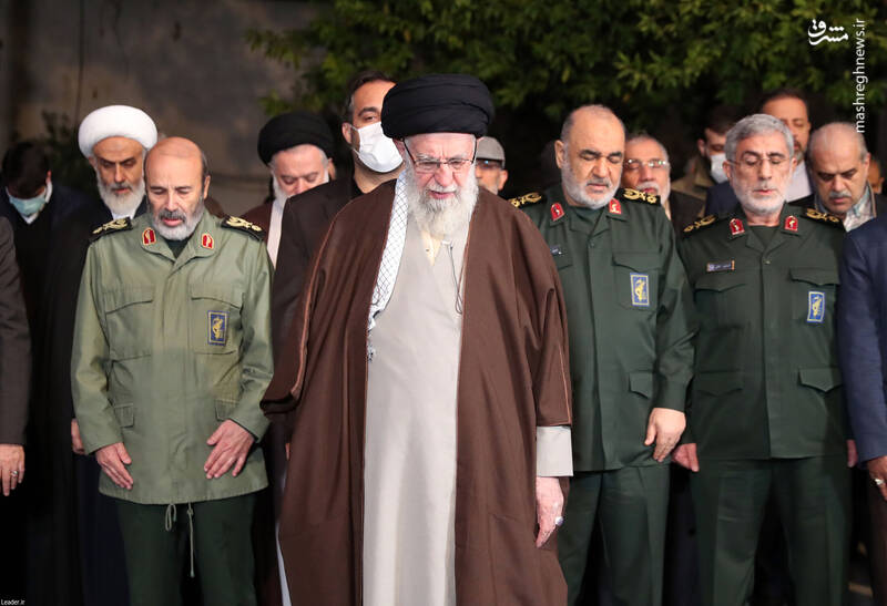 عکس/ اقامه نماز رهبر انقلاب بر پیکر شهید سید رضی