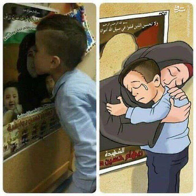 فرزندم جانم بفدایت، بر تمثال مادر بوسه زن وگریه کن واشک بریز که این حق توست در چنین سنی یتیم شدن بسیار دردناک است وباید گفت مرگ بر جنگ طلبانی که از بشریت هیچ نمی دانند مرگ بر بی شرمانی که مادرت را شهید کردند مرگ بر صهیونیست های جنایتکاری که که مادران فلسطینی را شهید وهزاران کودک چون تو را یتیم کردند.