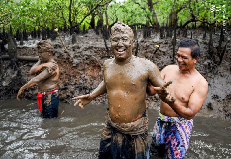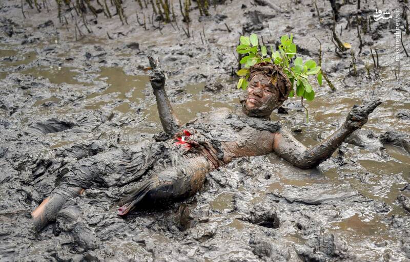 عکس/ حمام در گِل برای پاک کردن گناهان!
