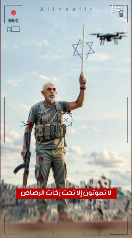 به گزارش گروه بین الملل اخبارکامیاران،کاریکاتوریستها و طراحان تصاویری از لحظات آخر عمر شهید یحیی السنوار که به سمت کوادکوپتر اسرائیلی تکه چوبی پرتاب میکند را به نمایش گذاشتند.