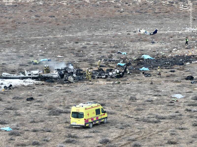 تصاویر هوایی از محل برخورد هواپیمای آذربایجانی در "آکتائو"